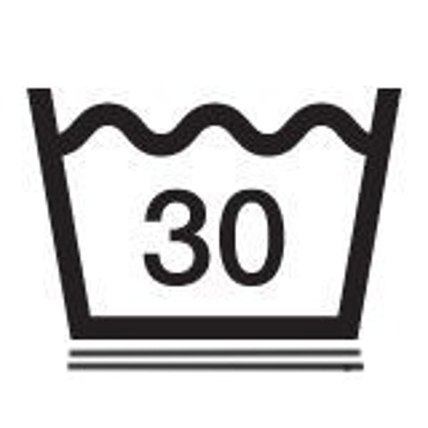 Séchage machine interdit | Repassage fer froid (110°) | Lavage pro à sec avec solvants usuels ou solvants pétroliers | Prog lavage très modéré Laine max 30° | Blanchiment interdit |